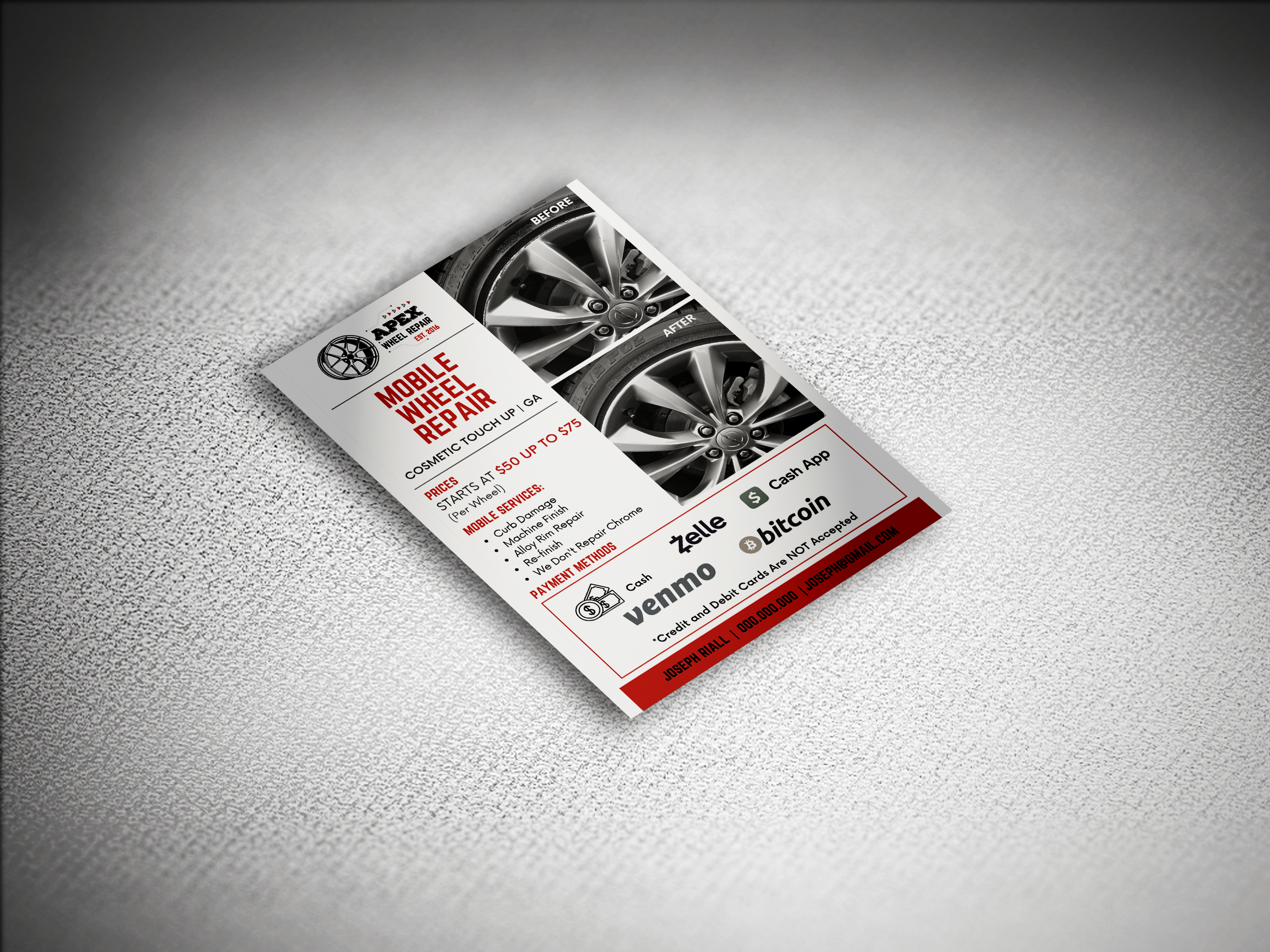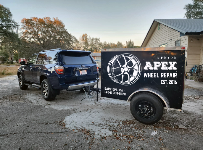 When I joined Apex Wheel Repair, the brand didn’t exist yet — at least not visually. Everything needed to be built from scratch, and everything needed to work together: from the logo customers would recognize on the street to the wrap on the trailer they’d see on the highway.
